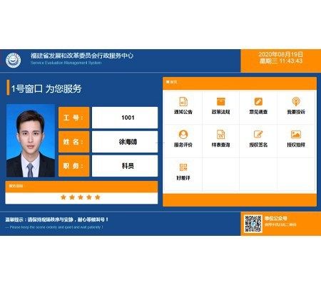 ● 顧客可對工作人員的服務(wù)態(tài)度、服務(wù)效率、業(yè)務(wù)水平、是否在崗等多方面進(jìn)行自主評價(jià),有效監(jiān)督工作人員的服務(wù)質(zhì)量;